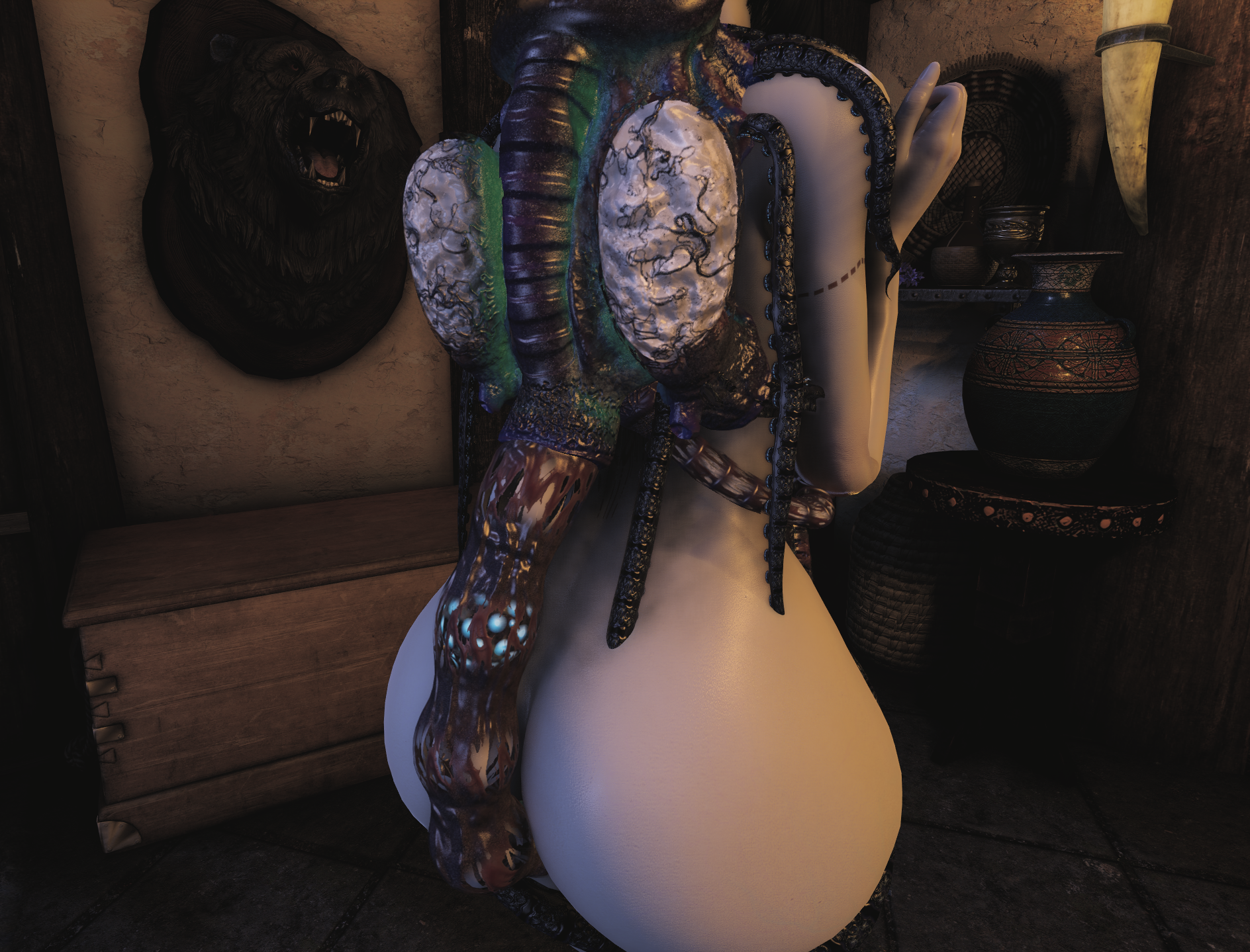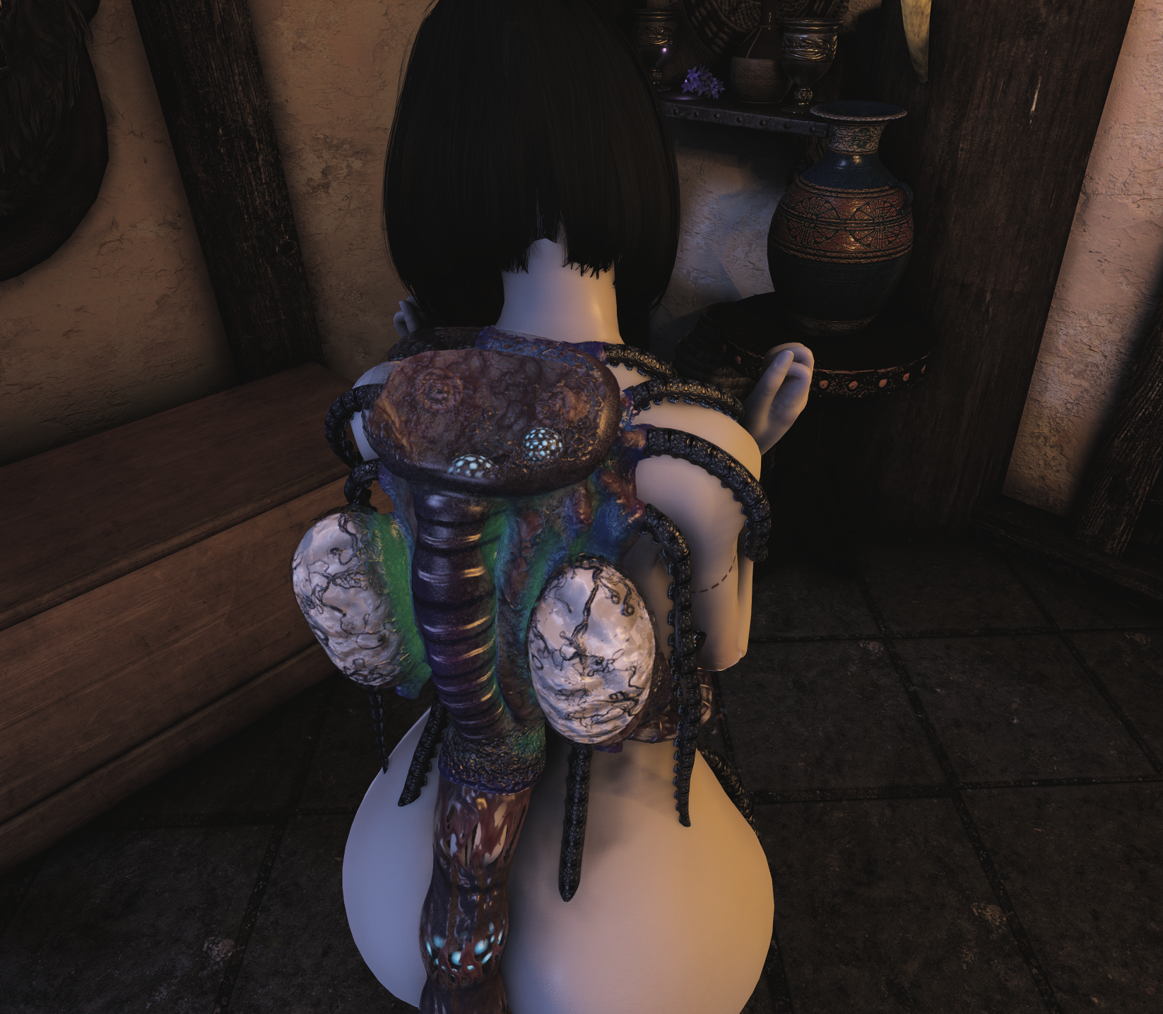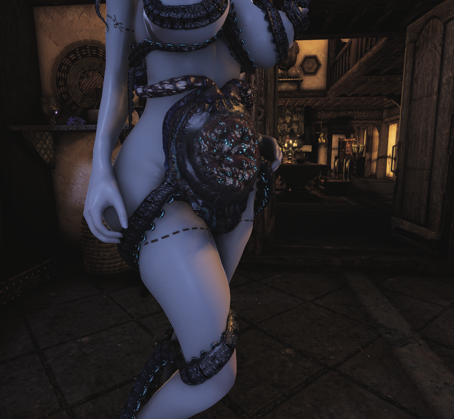 动态触手类衣服,一直不断灌注的那种异种类服装,并且有勒肉效果