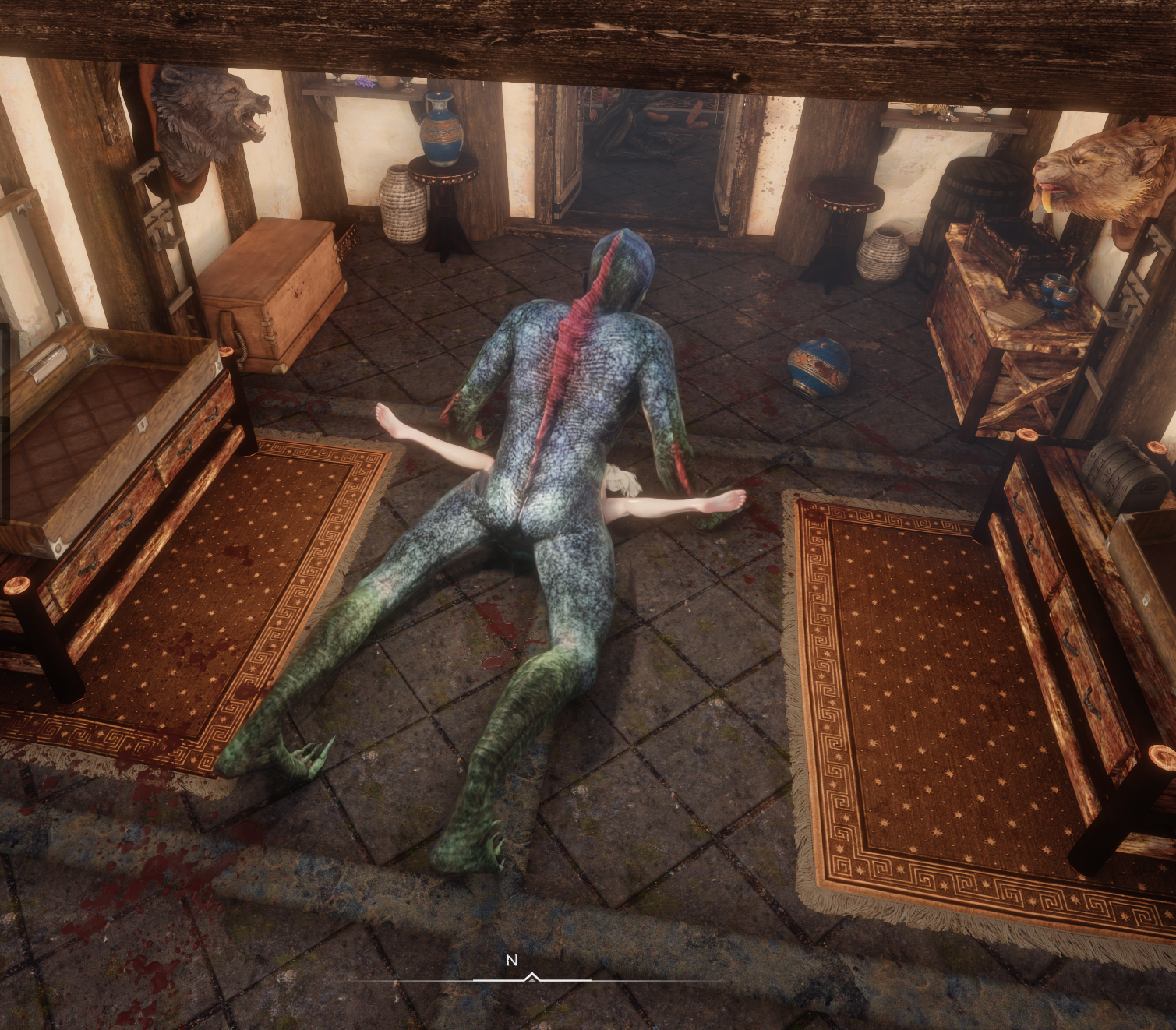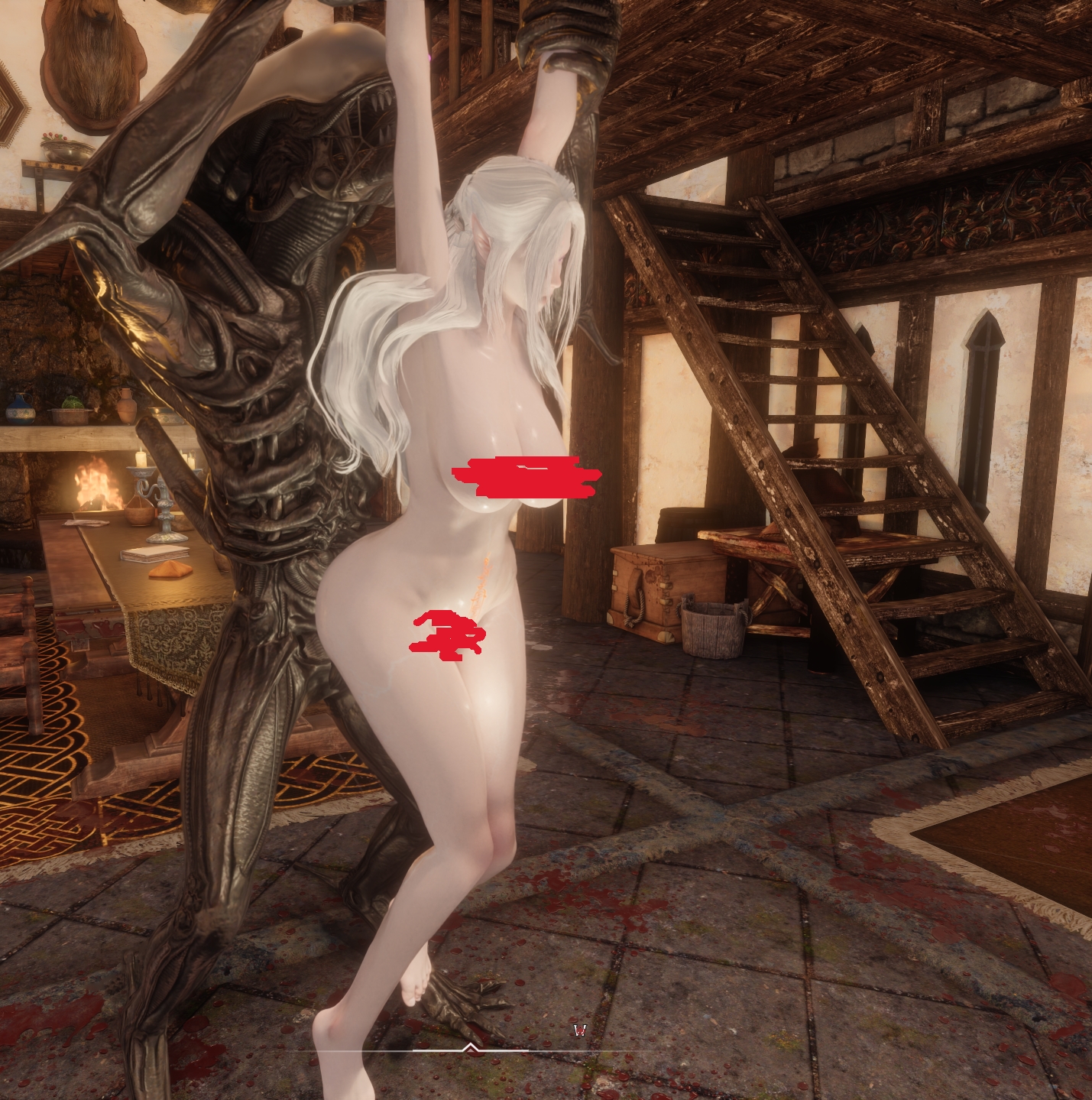 快捷开启方式可以用HOME键开启切换天气的那个菜单,菜单中有一个AIM功能,选中之后在搜索栏输入图中的ESP名字,并且勾选NPC,然后选中任意一个生物名字,点击生成即可,如果生成的是进入战斗的怪物,直接按M键右边的逗号键投降即可,或者装备魔法中的诱惑魔法(轮奸自己)也可以快速开启实验室场景,动作非常之多,可以慢慢品鉴。